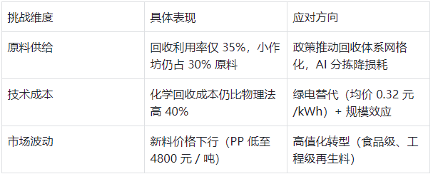 新兴品类:海洋塑料(OBP)、工程塑料(ABS/PS)回收量增速超 25%,但占比仍不足 5%。